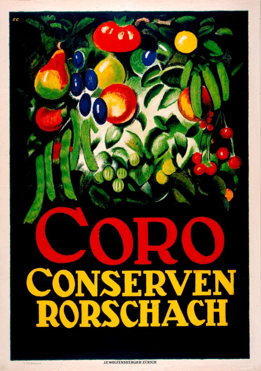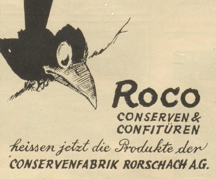 Der technische Fortschritt sowie die Weiterentwicklung von Konservierungsverfahren ebneten in der zweiten Hälfte des 19. Jahrhunderts den Weg zur industriellen Herstellung von Nahrungsmitteln. Zu den Schweizer Pionieren auf diesem Gebiet gehörte die 1916 gegründete Conservenfabrik Rorschach AG, die zwei Jahre später die aus den Anfangsbuchstaben des Firmennamens hergeleitete Wortmarke «Coro» eintragen liess und diese auch mit dem abgebildeten Plakat von Emil Cardinaux (1877–1936) bewarb. Dies führte bald zu einem der ersten Markenprozesse in der Schweiz. Geklagt hatte die Konservenfabrik Lenzburg, die eine Verwechslung mit ihrer eigenen Marke «Hero» befürchtete. Der Fall wurde bis vor das Bundesgericht gezogen. Dieses entschied im März 1926 zugunsten des Lenzburger Unternehmens. Denn die Richter sahen als erwiesen an, dass «die Detailkundschaft in dieser Branche zum großen Teil aus Hausfrauen, Dienstboten und Kindern besteht, an das Unterscheidungsvermögen des kaufenden Publikums hier also nicht allzu hohe Anforderungen gestellt werden dürfen». Der daraufhin in «Roco» geänderte Markenname etablierte sich schnell auf dem Markt, nicht zuletzt dank des von Alois Carigiet entworfenen Roco-Vogels.